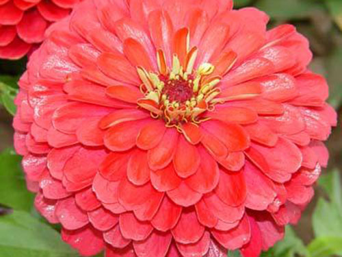 百日草,一年生草本植物。側枝呈杈狀分枝。夏秋開花,頭狀花序單生枝頂,花徑約10厘米,花瓣顏色多樣,花期長,花型變化多端,基本上都是重瓣種。