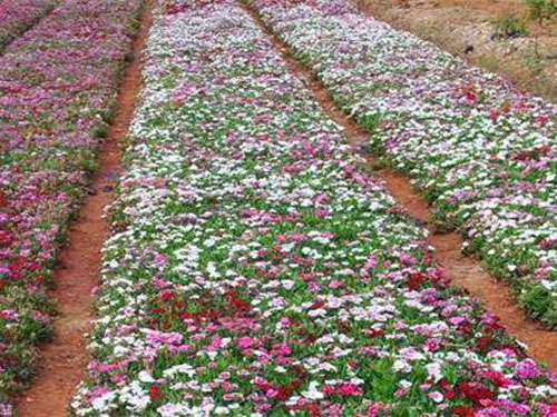 石竹株型低矮,莖稈似竹,葉叢青翠,自然花期5-9月,從暮春季節(jié)可開至仲秋,溫室盆栽可以花開四季?;斏Χ?,單生或成對,也有呈圓錐狀聚傘花序,花徑不大,僅2至3厘米,但花朵繁茂,此起彼伏,觀賞期較長?;ㄉ邪?、粉、紅、粉紅、大紅、紫、淡紫、黃、藍等,五彩繽紛,變化萬端。園林中可用于花壇、花境、花臺或盆栽,也可用于巖石園和草坪邊緣點綴。大面積成片栽植時可作景觀地被材料,另外石竹有吸收二氧化硫和氯氣的本領(lǐng),凡有毒氣的地方可以多種。切花觀賞亦佳。